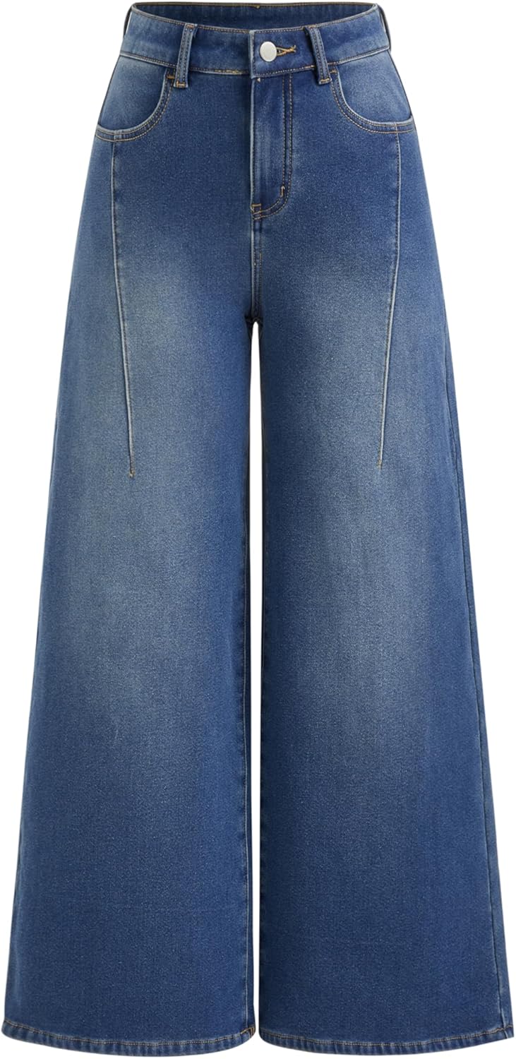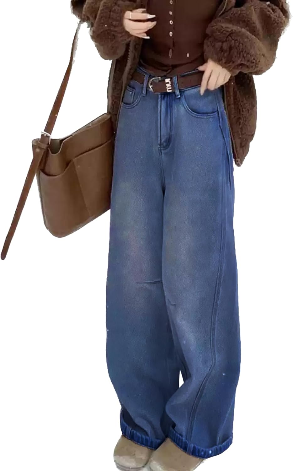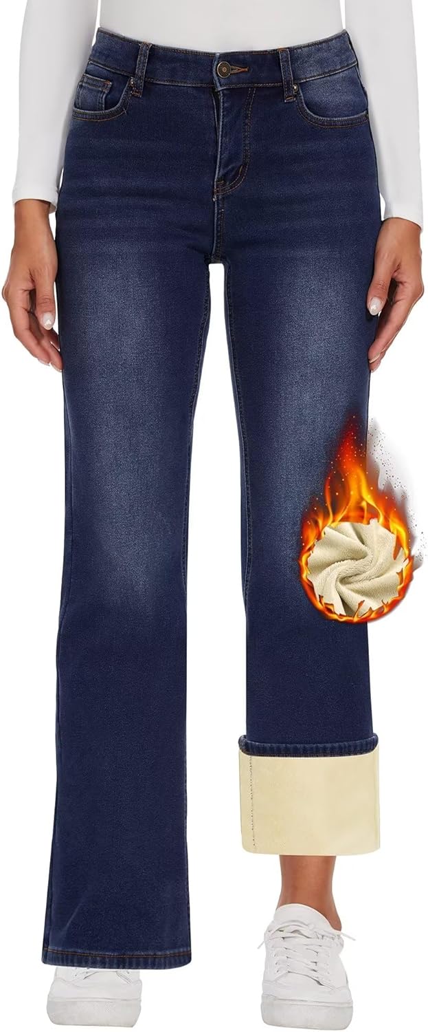 About this item Fleece Lined for Added Warmth Provides Extra Comfort in Cold Weather High Stretch Denim Fabric Offers a Flattering and Comfortable Fit Wide Leg Design Creates a Trendy and Relaxed Silhouette Stylish Classic Wash Blue Color Goes Well with Variety of Tops Durable Denim Construction Ensures Long Lasting Wear