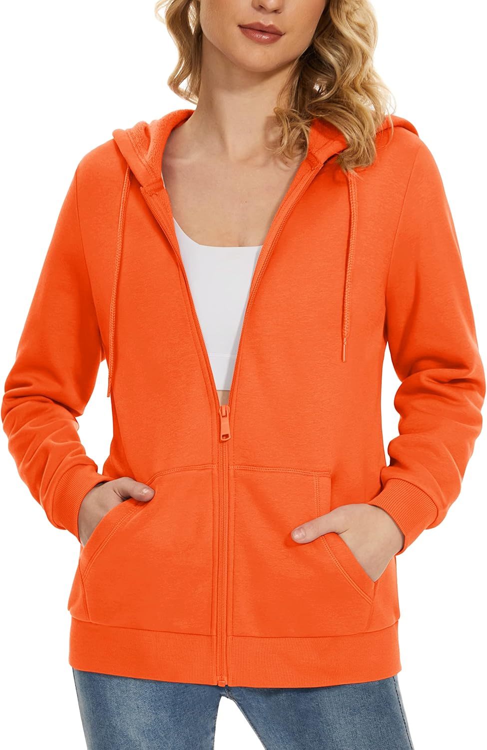 • Women Fleece Lined Zip Up Hoodies Casual Hooded Jacket Workout Full Zip Sweatshirts Pocket Coats