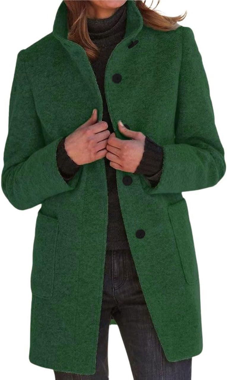 About this item Front button closure Slim fit,Simple solid wool coat,Show your beautiful body curve,Two hand pockets Occasion:Mid-long wool overcoat,Perfect for your Daily wear,Work,Dating with friends and other casual occasions,All match,Great to wear with leggings, jeans,high heels, boots etc Wash:Hand wash,Dry clean recommended Notice:US SIZE,Imported