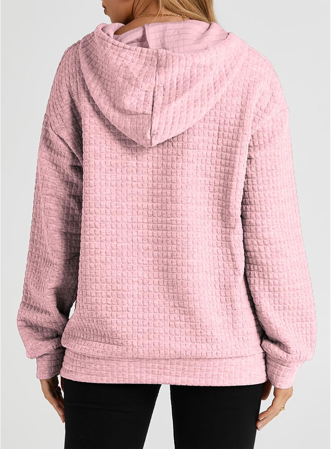 - ★【FEATURES】: Plain casual waffle hoodie sweatshirt, hooded pullover, drawstring, drop shoulder, long sleeve sweater with pocket, fall outfits for women. A hoodie that goes with everything.