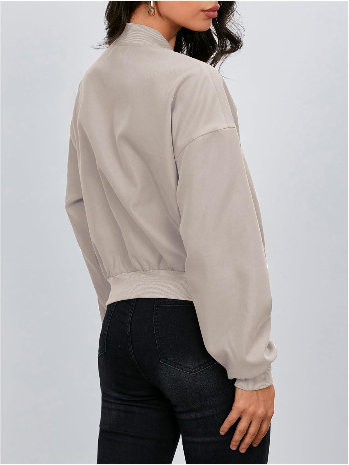 - Baseball Collar, Long Sleeve, Zipper Front, Casual Jacket Outerwear
