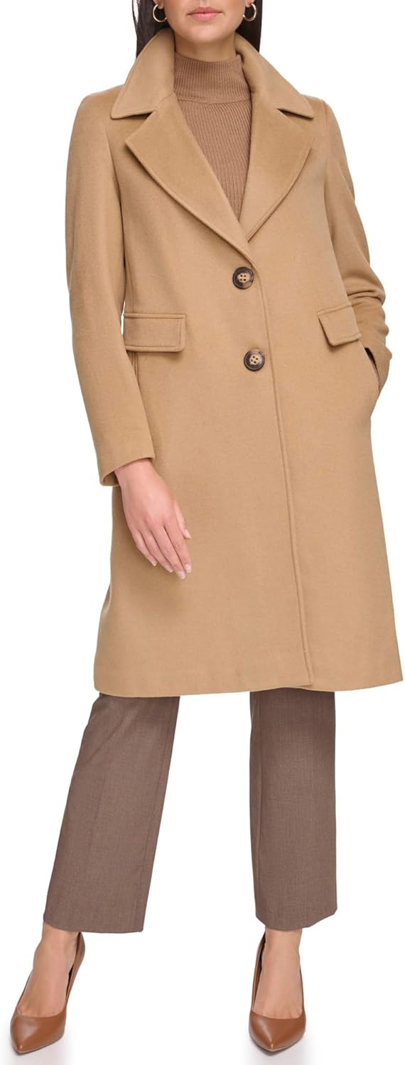 Women Full-Length Buttoned Wool Coat (Petite, Standard, Plus)